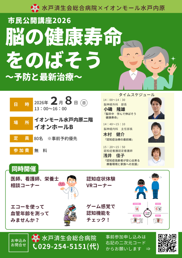 市民公開講座2026 脳の健康寿命を伸ばそう~予防と最新治療~ 開催のお知らせ
